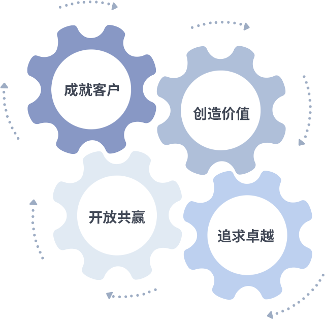 成就客户是一切决策的出发点,创造价值是衡量所有工作的标准,追求卓越是金贝娱乐做事做人的态度,开放共赢是金贝娱乐的格局也是最终的结果。价值观的齿轮环环相扣,推动着组织里的每个人不断向前。